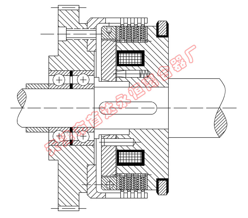 該系列離合器屬于磁通不經(jīng)過摩擦片組的結(jié)構(gòu)形式,短電后的殘余力矩小,動(dòng)作時(shí)間快。特別適用于對動(dòng)作時(shí)間有要求的場合使用。在使用過程中摩擦片磨損到一定程度,出現(xiàn)力矩下降時(shí),需將工作氣隙進(jìn)行調(diào)整。